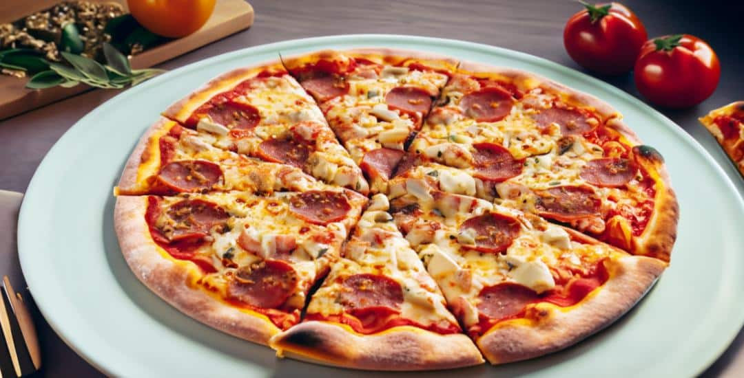 Tomate, queso, jamón y pepperoni